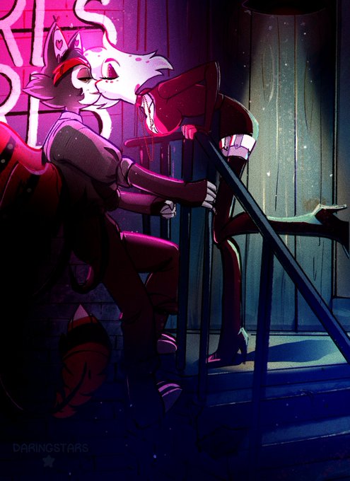 Husk is always happy to walk him to work and pick him up at the end of the night- always with a kiss 😘 I've been working on this one little bits here and there for ages #huskerdust #hazbinhotelfanart #HuskHazbinhotel #Angeldusthazbinhotel