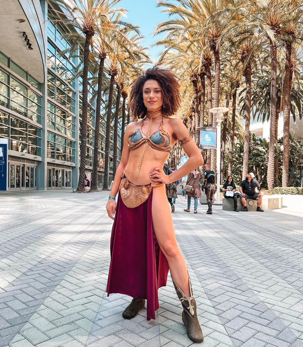 I'm starting to feel like this is becoming my signature cosplay 😂. I'm not sure if I should be happy or mad by the 😂. I just wanted to get more use out of it. PC: @EddieBPhotos #slaveleia #huttslayerleia #StarWars #starwarscosplay #cosplay #femalecosplay