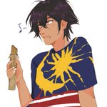 our oyen is eating milo flavoured aiskrim malaysia btw #SahmuraNegaraku #hwsmalaysia #マレーさん生誕祭2022
