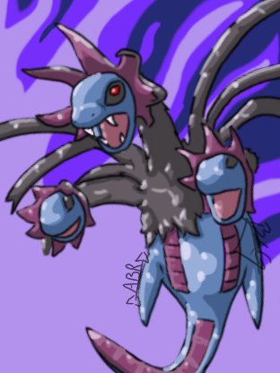 Poketober Day 8: Hydreigon! First one I’ve struggled with but I think it turned out okay #inktober #inktober2022 #pokemon #drawing #art #digitalart #halloween #hydreigon