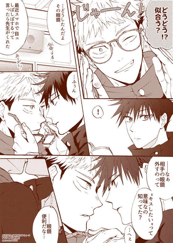 お題『眼鏡』 伏が虎の眼鏡外したのは先生から貰ったって聞いてなんかちょっとモヤッとしたから …だけどすぐに虎が触ってきたからどうでもよくなった #i0320xf1222ワンウィークドロライ