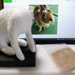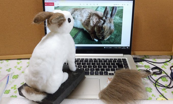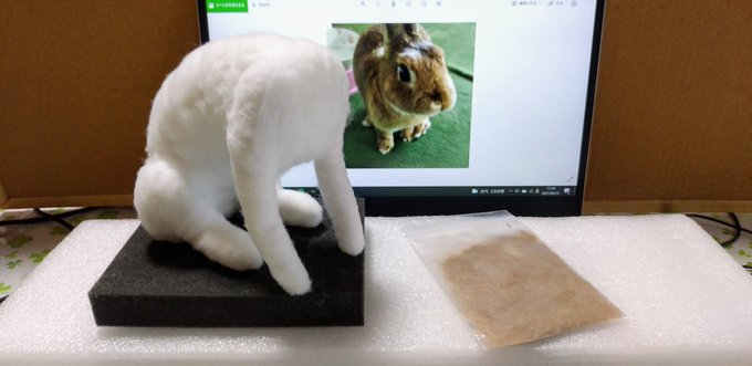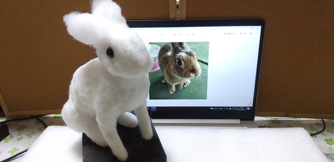 #うさぎ作品展inTwitter0921 満月に見とれて時間に遅れました。反映されないと思いますがせっかくなので投稿します😅 羊毛ちょんちゃん無事ママの所に帰りました💖これからはずっと一緒 #うさぎ作品展inTwitter #羊毛フェルト #オーダーメイド #羊毛うさぎ等身大 #植毛仕上げ #iichi #うーらんどーる