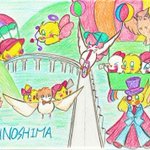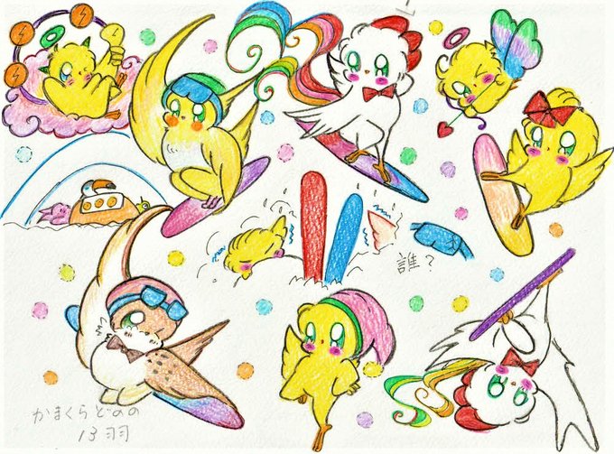 #イラスト #illstration #スズメ組 山口県にある「角島」を観光 スズメ兄貴、風船🎈でバランスとって、一輪車でツーリング🚴♂️ トンビが!アマビエが!眠りの🐤ちゃんが! 角島と海の美しさに、みんなウットリ🌸 また、行きたいね❣