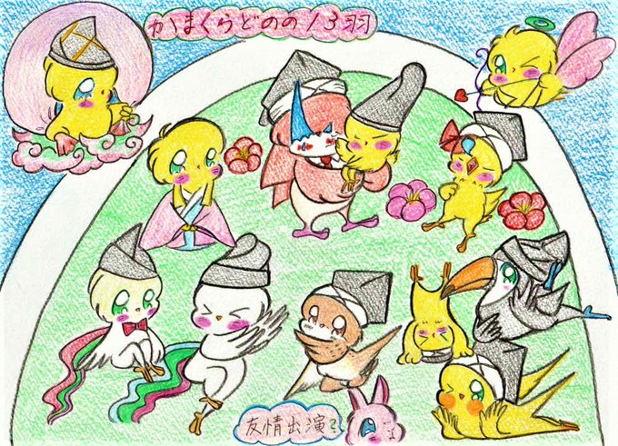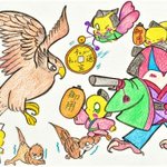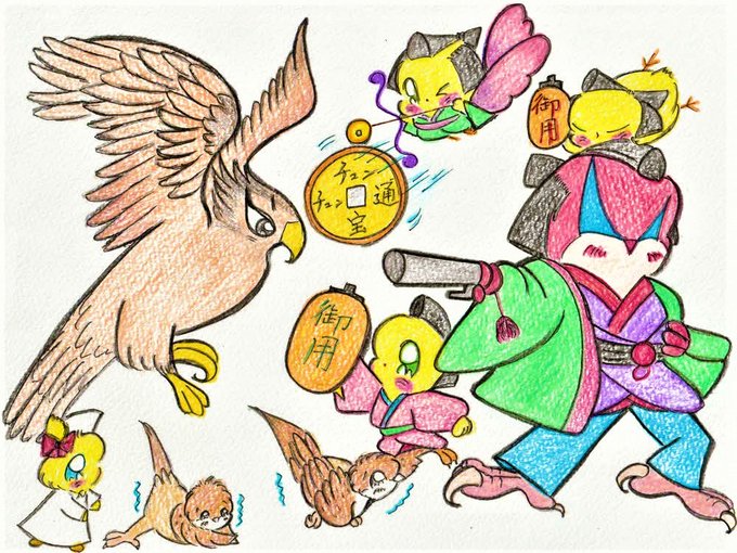 #illstration #イラスト 「鎌倉殿の13人」」面白いので「かまくらどのの13羽」描いてみました。スズメ組だけではメンバーが足りないので、「ブラジルの森林破壊監視を4月から中止」のトゥッカーノとウサギさんに友情出演してもらいました。2月もよろしくお願いします❣