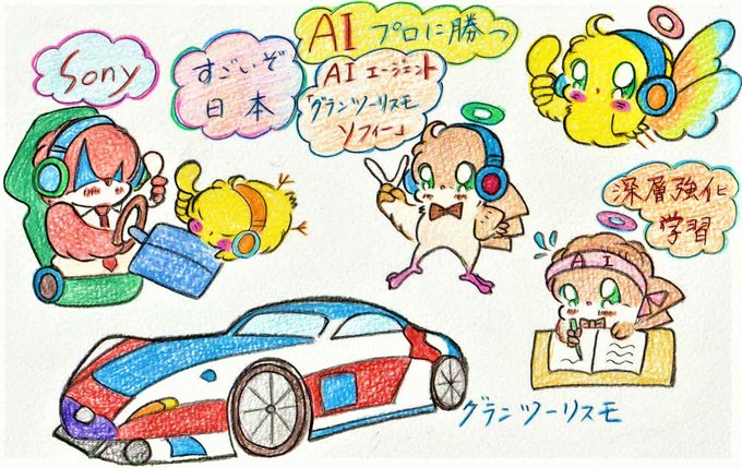 #illstration #イラスト #すごいぞ日本 SONY開発の革新的なAI「グランツーリスモ ソフィー」最高峰の人間のプロに勝利! (97年IBM「ディープブルー」チェス世界王者に勝利 16年英ディープマインド「アルファ碁」) ソニーはEV車にも参入。自動運転技術の開発に期待します🚙!