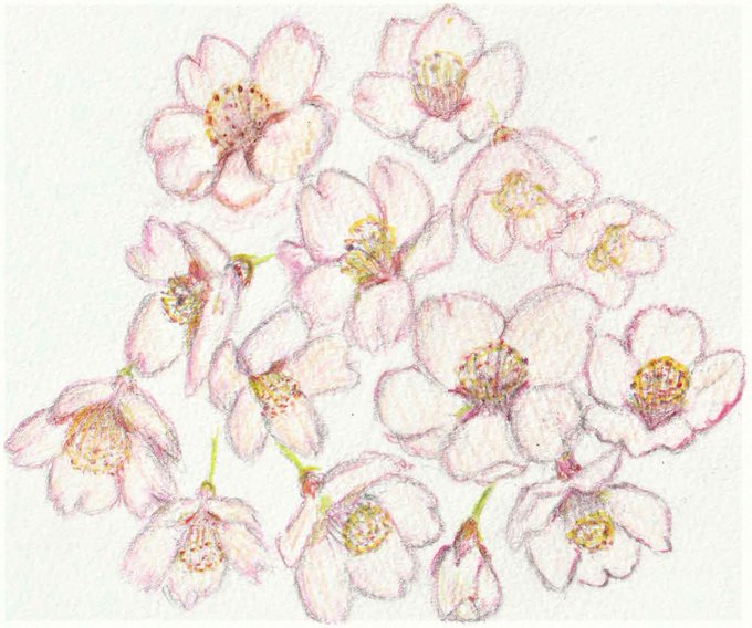 #illstration #桜 #イラスト サクランボの花が、一斉に咲きました🌸 メジロが忙しそうに花の蜜を吸っています。 なぜか、ミツバチが来ません😢昔は蜂の羽音がうるさいほどいたのに… 桜の花を、メジロや雀、それに、昨日あいさつに来てくれた(?)クマンバチと一緒に描こうと思います(途中です)