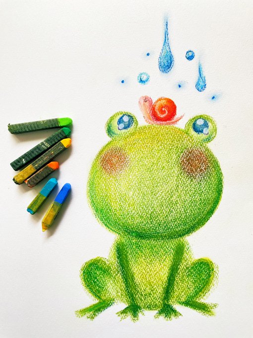 らくがき。 姪っ子と 楽しく描いたから 楽描きかな😊 #らくがき #イラスト #オイルパステル #カエル #アナログイラスト #絵描きさんと繋がりたい #イラスト好きさんと繋がりたい #illustrasion #イラストレーター