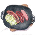 過去絵からソーセージとザワークラウト。 #watercolor #watercolorpainting #watercolorfood #foodpainting #foodillustration #illustratedfood #透明水彩