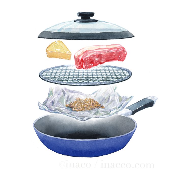 燻製のやり方説明イラストです。日清医療食品様発行の『食宅便』のカタログ「美し国」vol.88にて使っていただきました。 #watercolor #watercolorpainting #watercolorfood #foodpainting #foodillustration #illustratedfood #透明水彩