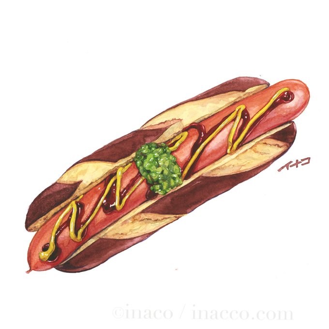 アメリカンドッグ。 これはGORO先生の水彩レッスン受講時に描いたGORO先生スタイルの絵です。 #watercolor #watercolorpainting #watercolorfood #foodpainting #foodillustration #illustratedfood #透明水彩 #アメリカンドッグの日