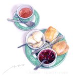 クリームティ。 このお皿の色、スコーンに合ってていいですよね。家にこの色のお皿ないので探そうかな。^^ #watercolor #watercolorpainting #watercolorfood #foodpainting #foodillustration #illustratedfood #透明水彩