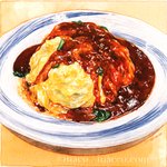 これは近所の中華料理屋のお気に入りメニュー。私はオムライスって呼んでるけど、メニュー名としてはエビチリチャーハンなんですよね笑 …オムライスですよね笑 #watercolor #watercolorpainting #watercolorfood #foodpainting #foodillustration #illustratedfood #透明水彩 #オムライス