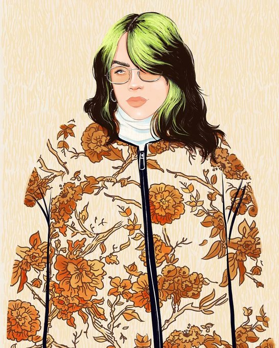 Time to bring out your favorite coat and put on your favorite Billie album. Illustration by Amber Day, aka @visbii, represented by @_illustrationX Explore her portfolio: buff.ly/2WkYP0l #billieeilish #portrait #illustration #illustratedportrait #people #digitalart