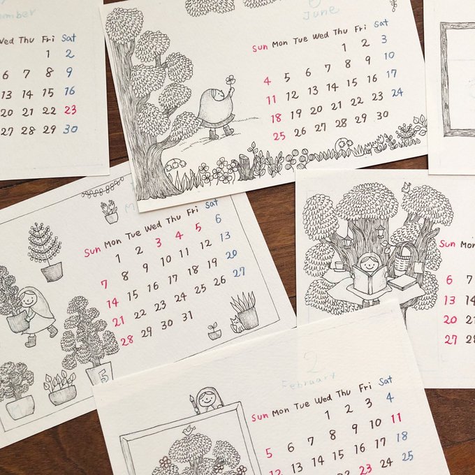 ものすごい勢いでカレンダーを描いてます。 2023年も数字まで全部手描きです🖋🎨❗️ #illustration #illustrator #イラスト #イラストレーター #絵 #水彩画 #ペン #illustrationakko #2023年カレンダー #卓上カレンダー #minne
