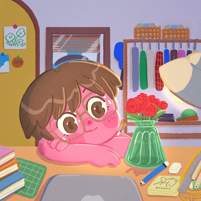 When you give me some 💐 ความรู้สึกของการได้รับดอกไม้มันเป็นแบบนี้นี่เอง ฉันเอามันใส่ไว้ในแจกันที่สีตัดกันเป็นอย่างดี วางไว้ตรงนั้น ตรงที่มองเห็นตลอดทั้งวัน👀 #procreate #procreateart #doodle #digitalart #illustration #illustrationartists #illustrationart #วาดรูป