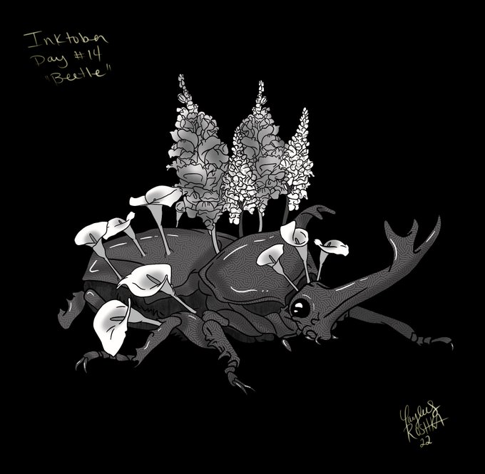 🕸 INKTOBER 🕸 Day 14: Beetle 🪲 This one for #Auctobre was super fun! Floral beetle, done with #Procreate for iPad. . #Inktober #inktober2022 #auctobre2022 #digitalpainting #artist #Original #ArtistOnTwitter #insect #animal #nature #Floral #illustraton #drawing #fantasy