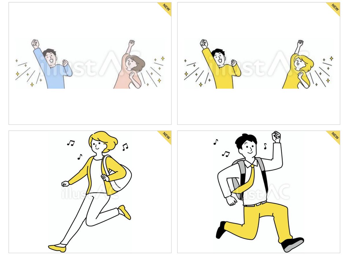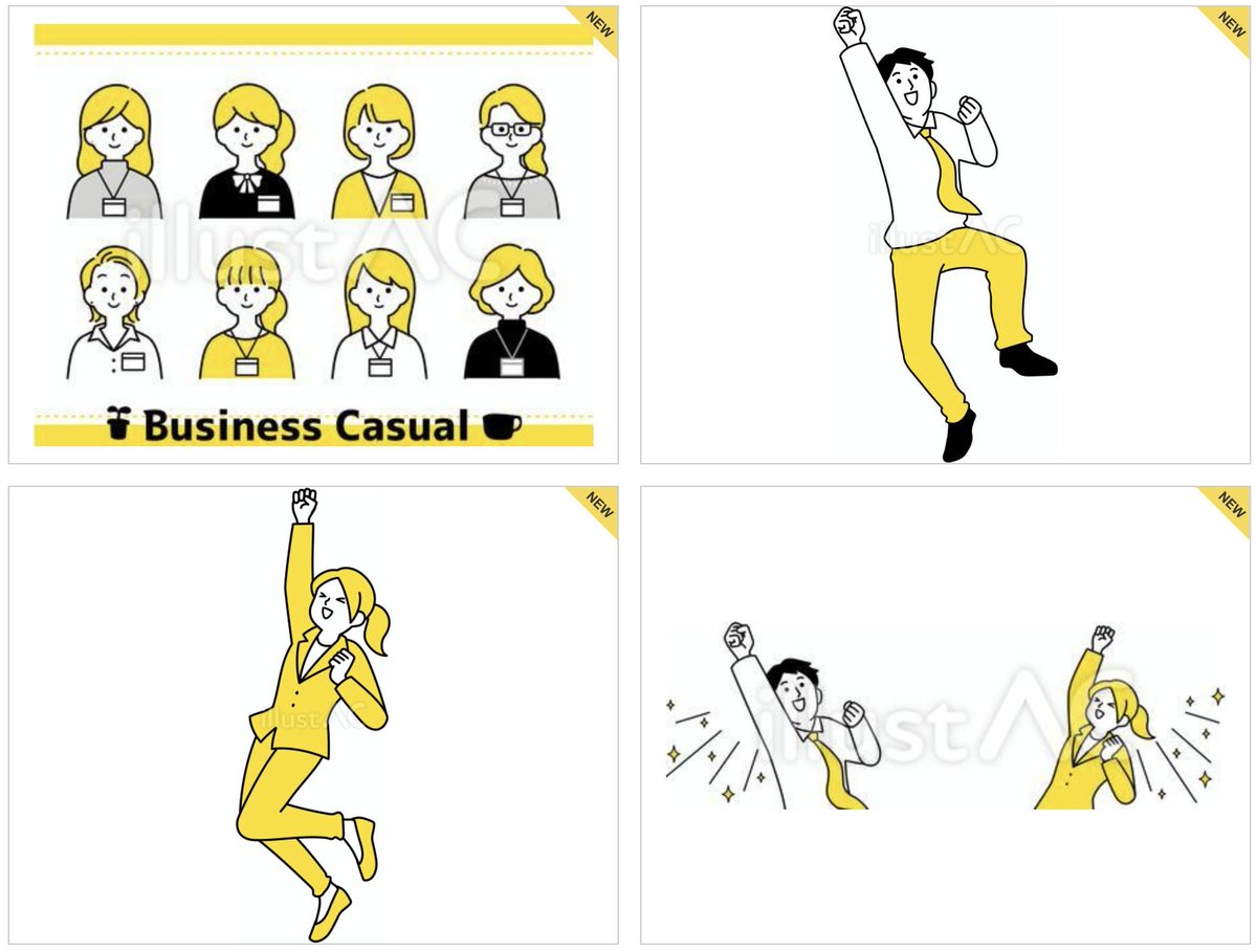 イラストACへ追加しました。 黄色、青、カラーの3種類です(AIデータ・jpeg・png) ・笑顔で出勤する男性 女性 ・喜ぶ男女 ジャンプ 上半身 ・女性のアイコンセット(エプロン、医療系、白衣、看護師など) ac-illust.com/main/profile.p… #イラストAC #フリーイラスト #フリー素材 #illustrator素材