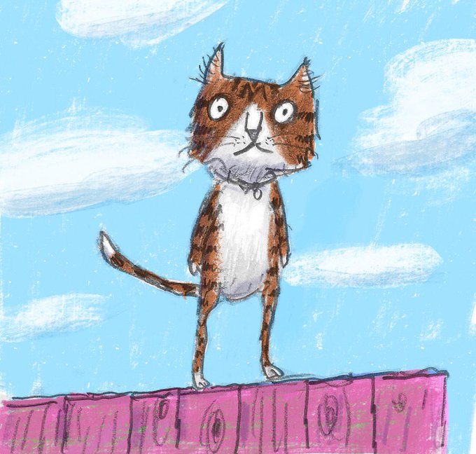 Small cat on a fence #CatsOfTwitter #illustration #illustratorsontwitter #kidlitart #pencilsketch #picturebook #cat #Caturday