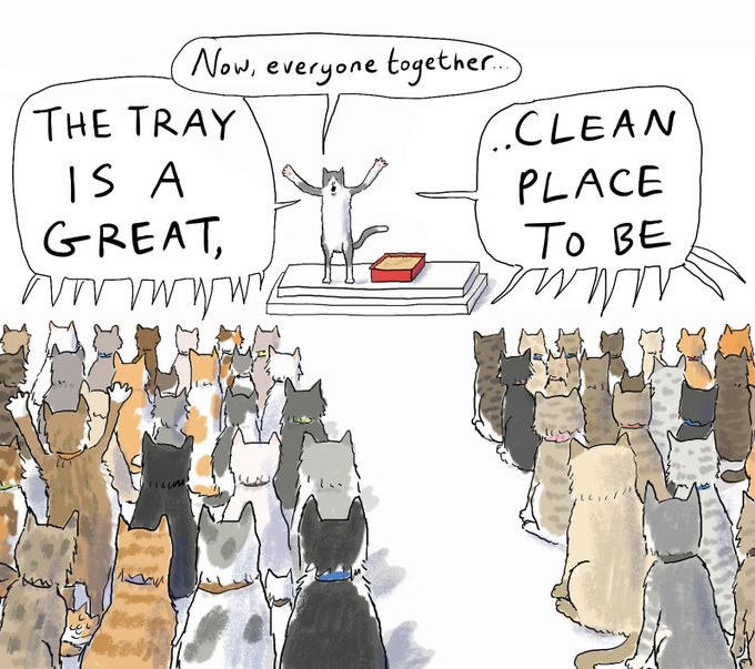 Something for #caturday from the archives created for @Battersea_ #CatsOfTwitter #illustratorsontwitter #kidlitart #cats #illustration #catlittertray