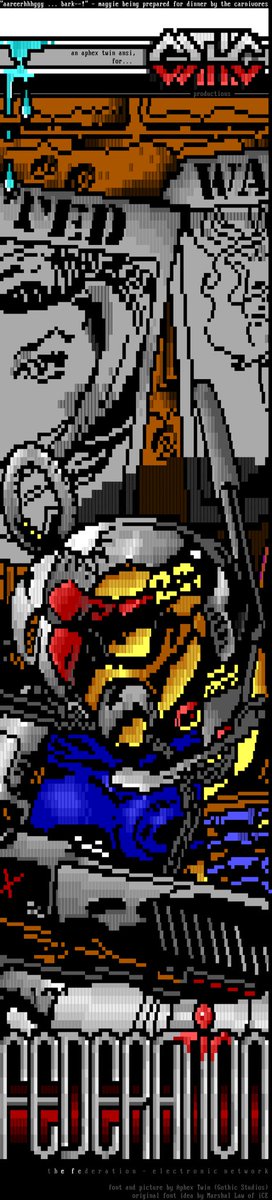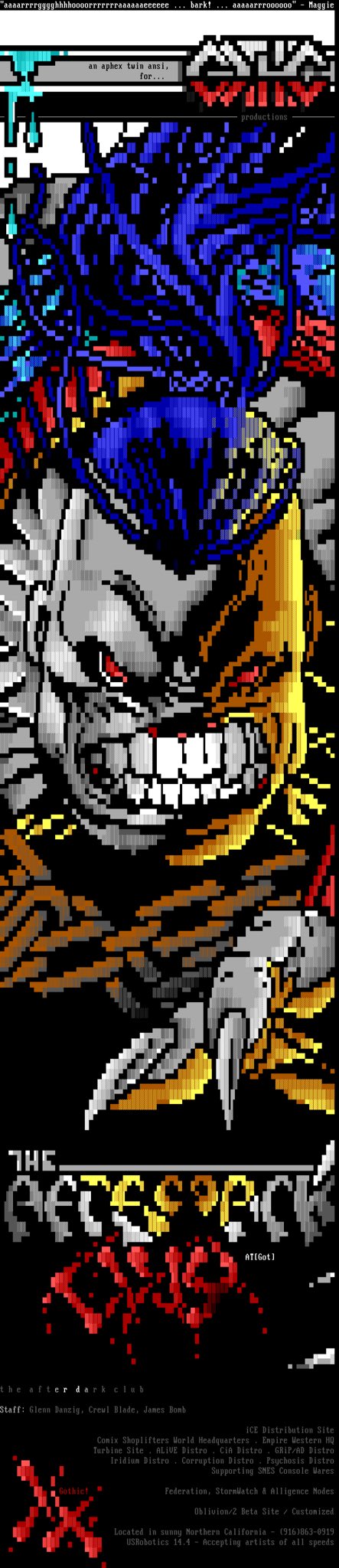 Image Comics ANSI by Aphex Twin // Gothic (1994) #ansiart #ansi #ascii #asciiart #pixelart #textmode #textart #text #art #demoscene #bbs #retrocomputing #retrographics #graffiti #graffitiart #imagecomics #image30thanniversary #comics #comicbookart #spawn #pitt #gen13