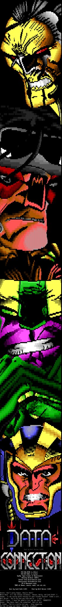 Data Connection —- ANSI by Lord Soth, logo by Hell Raiser // iCE (1994) @jonshiring #ansiart #ansi #ascii #asciiart #pixelart #textmode #textart #text #art #demoscene #bbs #retrocomputing #8bit #graffiti #graffitiart #imagecomics #image30thanniversary #comics #comicbookart