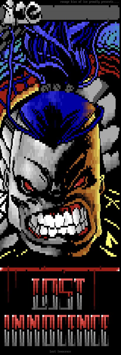 Lost Innocence —- Pitt ANSI by Ravage Bias // @iCE_Ads (1994) #ansiart #ansi #ascii #asciiart #pixelart #textmode #textart #text #art #demoscene #bbs #retrocomputing #retrographics #8bit #graffiti #graffitiart #imagecomics #image30thanniversary #comics #comicbookart #pitt