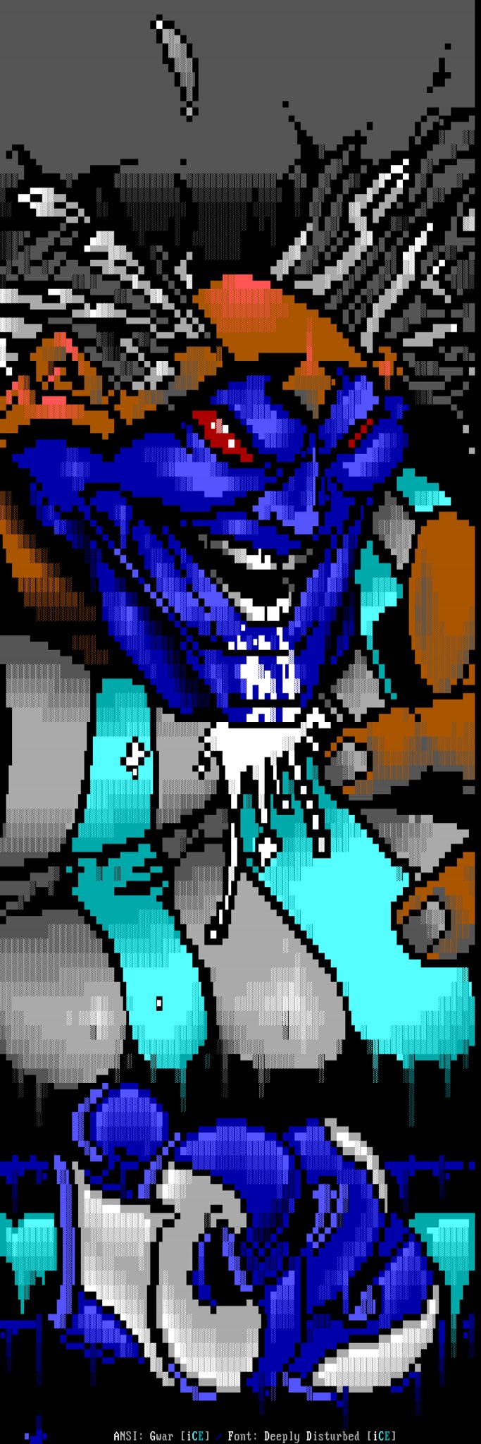 Violator ANSI by Gwar, logo by Deeply Disturbed // iCE (1994) #ansiart #ansi #ascii #asciiart #pixelart #textmode #textart #art #demoscene #bbs #retrocomputing #retrographics #graffiti #graffitiart #imagecomics #image30thanniversary #comics #comicbookart #spawn #toddmcfarlane