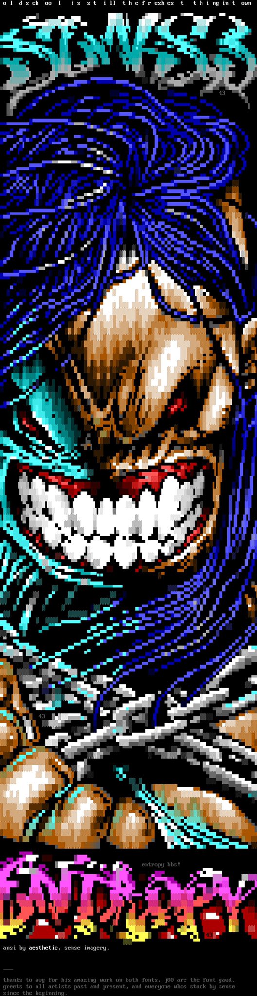 Entropy —- Pitt ANSI by Aesthetic // Sense (2006) —- #ansiart #ansi #ascii #asciiart #pixelart #textmode #textart #text #art #demoscene #bbs #retrocomputing #retrographics #typography #graffiti #graffitiart #imagecomics #image30thanniversary #comics #comicbookart #pitt #dalekeown