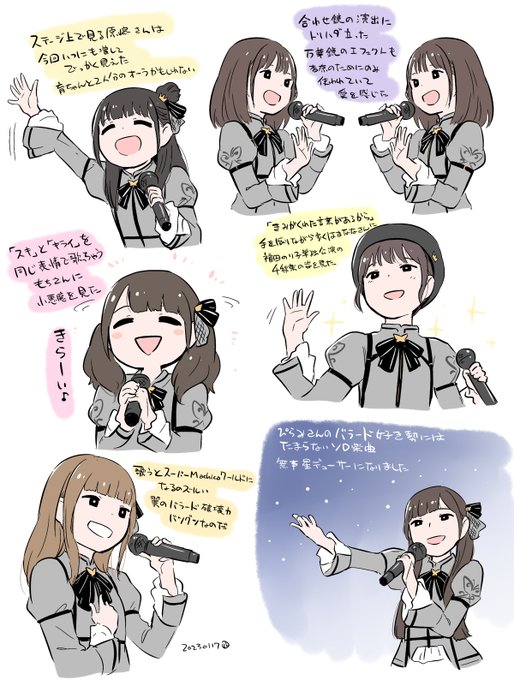 ミリオン9thライブ1日目感想イラストを描きました! 桃子のリーチ・アップ・ステップ!と星梨花のきまぐれユモレスクをメインに、ステージの構成とTh@nkYou中のちょうちょさんと原嶋さんの触れ合いを描いています。(語彙は、残念ながら、終わってます・・・) #imas_ml_9th_day1