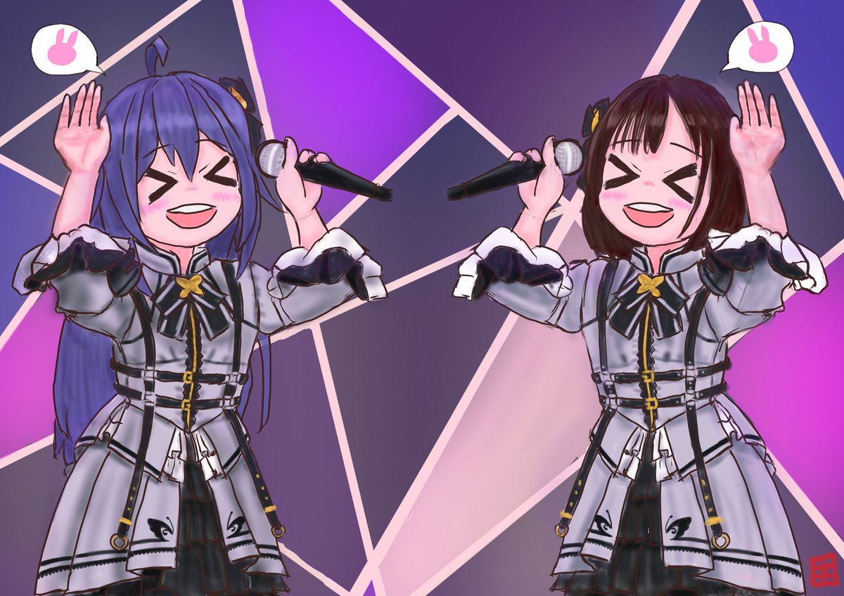 スポットライト・ミラーランド あわせ鏡のとのことうさ耳ダンス天才だったのでまとめ描いてみたよ~🐰 ミラーアンナとミラーナンス(*>△<) #imas_ml_9th #imas_ml_9th_day1 #望月杏奈 #夏川椎菜