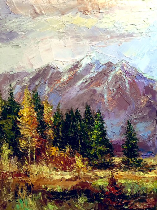 “Somewhere Near Banff”8x10 palette kinfe oil painting study by Peggy Ann Thompson #art #artwork #ArtistOnTwitter #artist #painting #fineart #impressionism #oilpainting Blackwell Gallery, Northwest Handmade or peggyannthompson.net #artistoninstagram