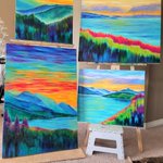 Hello and Happy Friday. These are some new paintings that are ready and waiting to get added to my website. Had a ton of fun painting these and as always my studio cat, Zoey is modelling for you. Have a beautiful weekend. Hugs💖☀️#oilpainting #mountains #impressionism #colorful