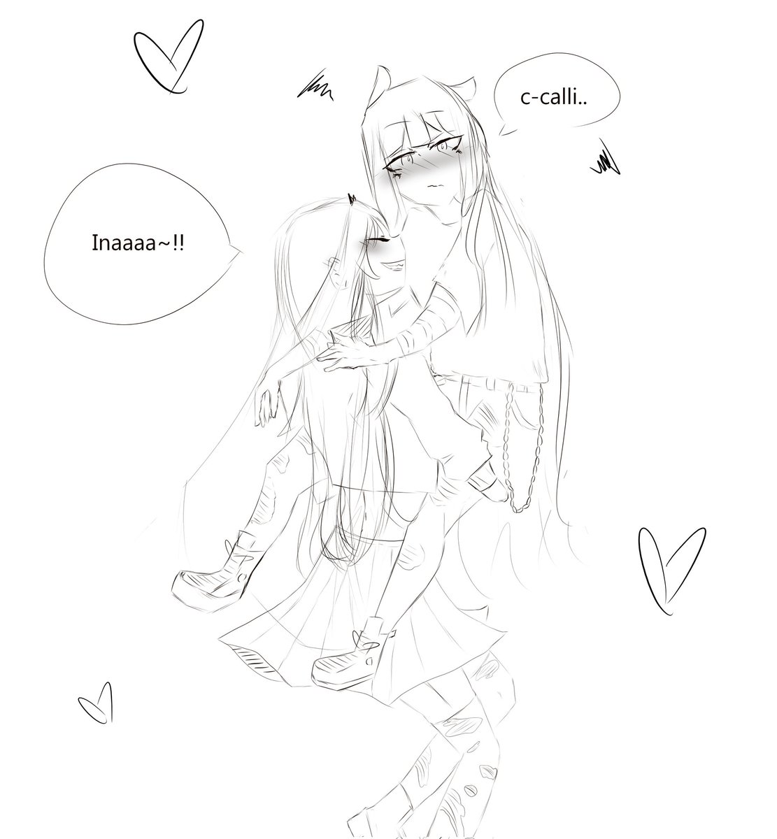 Mumei feet holding with Ina | sl44n3sh #pixiv pixiv.net/artworks/97539… Mumei holding Guras foot was judged as blursed. I hope this is less offensive. Didn t even include Inas foot. #vtuber #drawMEI #NanashiMumei #inaart #echii #nylonfeets