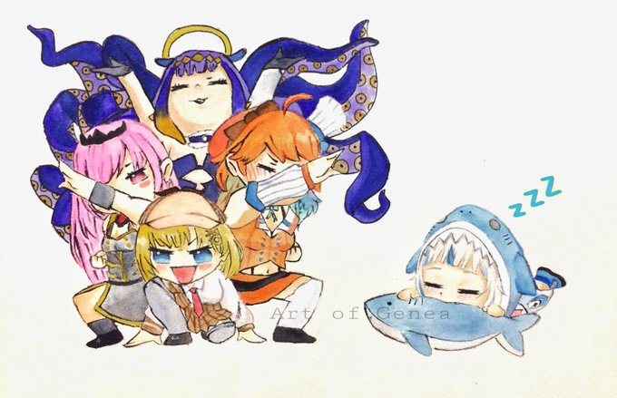 Wakey wakey, short shork. #HololiveEN #gawrt #ameliaart #takanashikiara #moricalliope #InaArt #vtubers #HoloMyth