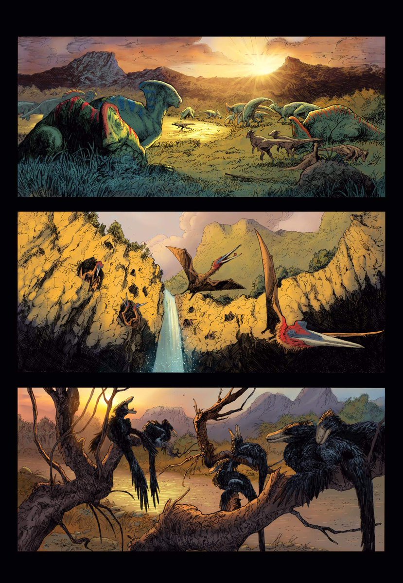Artwork from the Primitive War comic adaptation, illustrated by co-creator @BabisuKourtis and colored by @maja_colorist. #primitivewar #dinosaurs #dinosaurart #paleoart #paleofiction #comics #comicbooks #indiecomics #indiecomicbooks #comicart #comicbookart #comicpanels #raptors