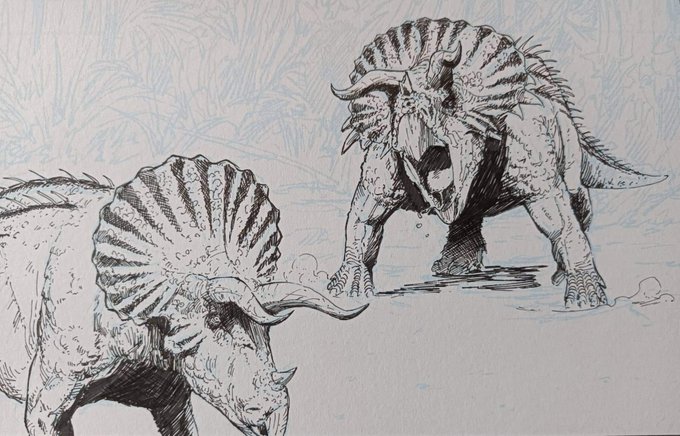 Artwork from the Primitive War comic adaptation, by co-creator @BabisuKourtis igg.me/at/primitivewar #primitivewar #paleoart #paleofiction #comics #ComicArt #comicbook #indiecomics #indiecomicbooks #trex #triceratops #tyrannosaurusrex #indiecomics #indiecomicbooks #dinosaurs