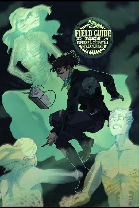 I make #indiecomics ! Currently I'm working on a webcomic I hope to launch publicly in October called Field Guide of the Infernal, Celestial , and Paranormal. It's a t4t horror about an immortal transman cursed to record the supernatural and his ex that wants to kill god.