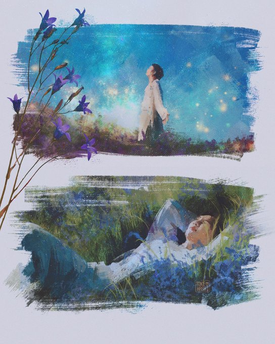 "I shot a million stars to let you know" Lonely by RM (Wherever you are, I hope you aren't lonely anymore. I hope that there's a smile in your heart. You did so well, thank you for Indigo) Do not repost💜 Details below! #btsfanart #namjoonfanart #Lonely𓁿 #Indigo #IndigoByRM