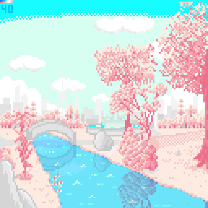 Infrared: City Park "A whole new world with just optic filter manipulation. You know this place before but still feels different." #pixelart #illustration #T_MR2 #ドット絵 #イラスト #infrared #ArtistOnTwitter #scenery