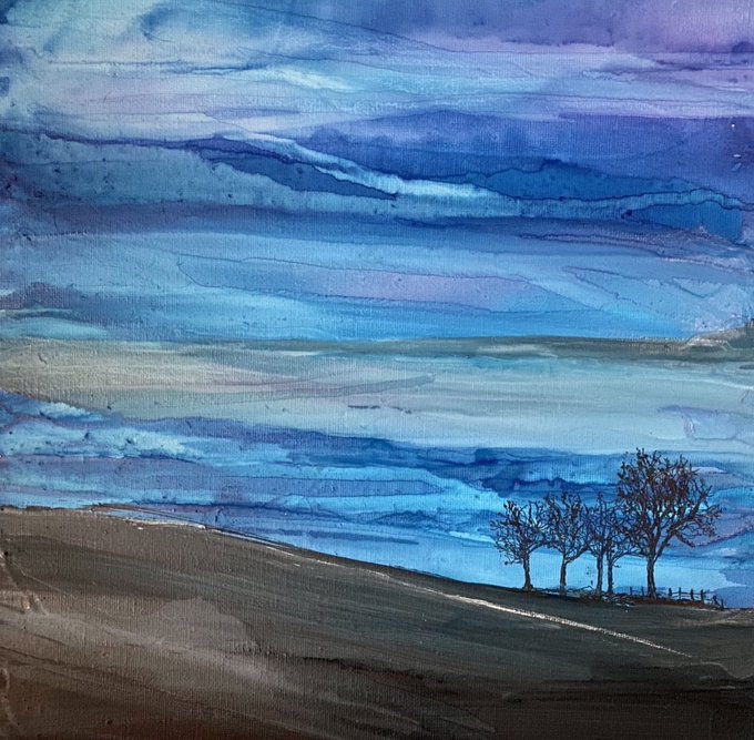 Hillside. Alcohol Inks and Windsor and Newton Ink. Starting to feel like Autumn 🍂 but hopefully we will get an Indian Summer. #ArtistOnTwitter #INK #contemporaryart #landscapepainting #painting