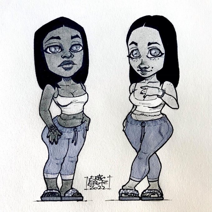 8 MATCH 🧍🏿♀️🧍🏽♀️ (Matching Outfits) ___ 8 down, 23 to go ✍🏽🔄🦉 (I will eventually buy a scanner ✋🏽💯) . . . . . . #inktober #inktober2022 #artchallenge #drawdaily #drawingoftheday #traditionaldrawing #sketch #sketchbook #inkeddrawings #artist #artwork #myartwork #cute #illustration