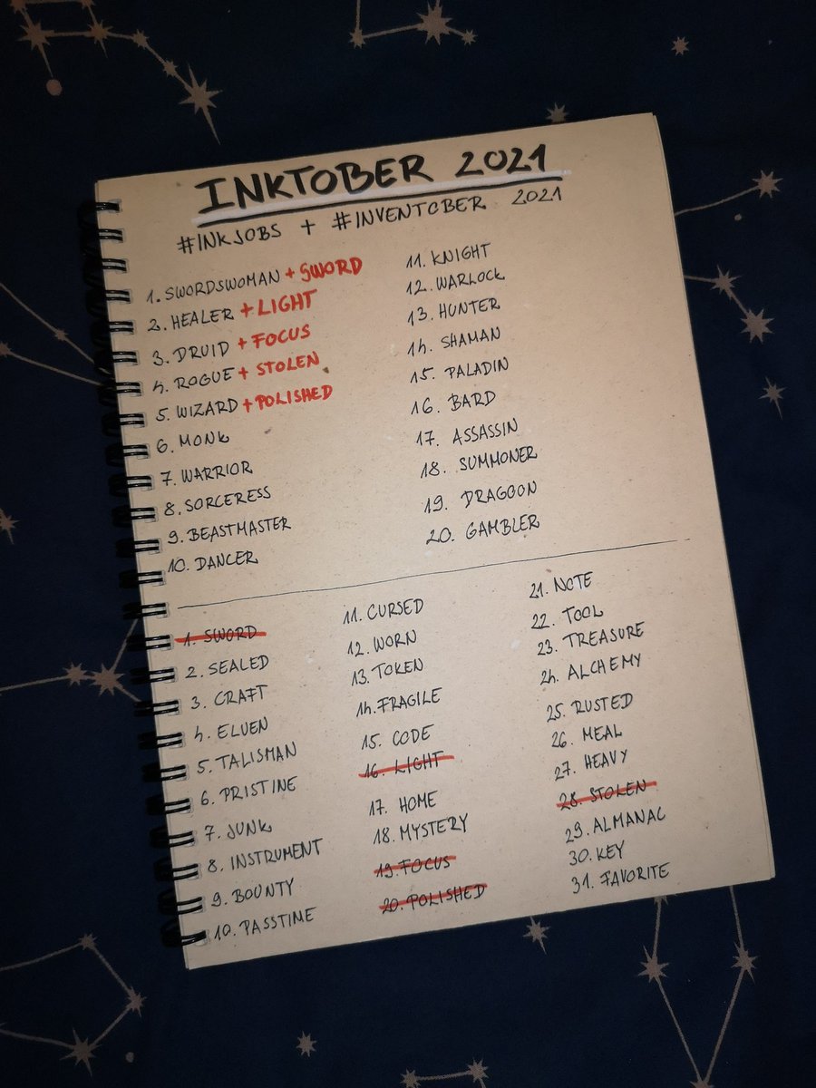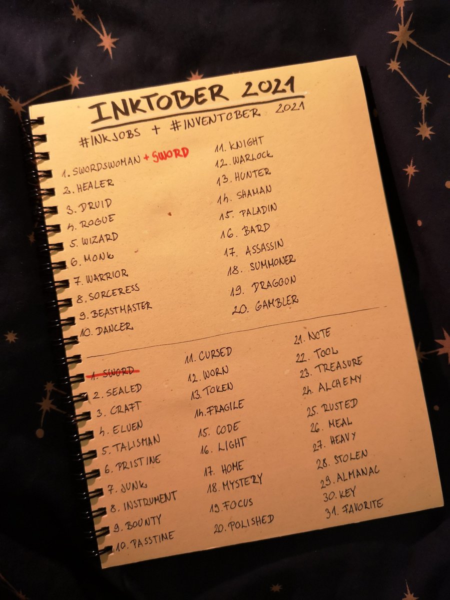 1. Swordswoman + Sword This year I'm doing a combined #Inktober list because I couldn't decide between #inkjobs and #inventober 🙈 Hope I can break my record (10) this year :D Pose reference by @theposearchives 💕