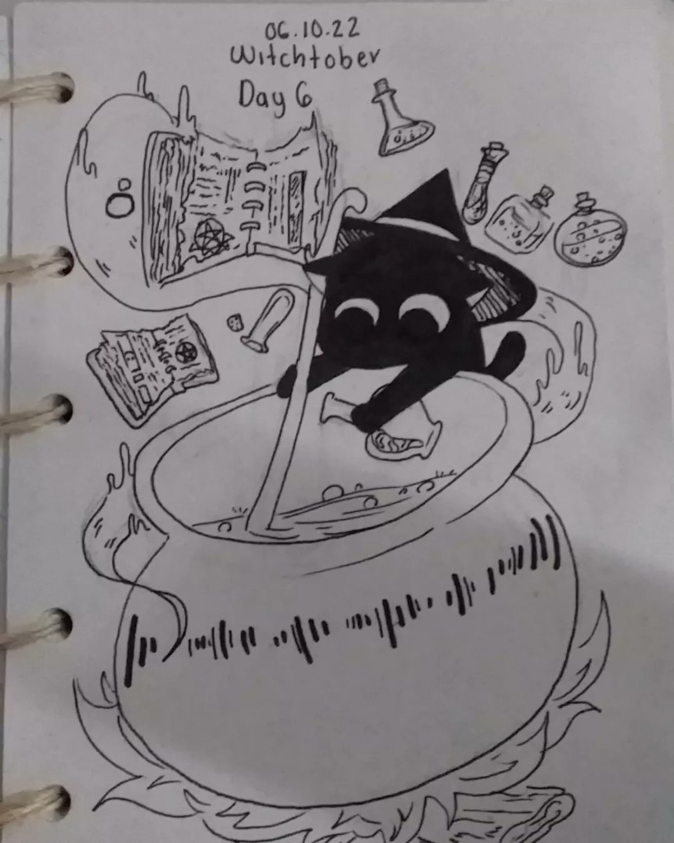 Dia 6:gato negro✔️ #witch #witchtober #witchtober2022 #dibujo #inkotber #inktober2022 #inktober2022day6