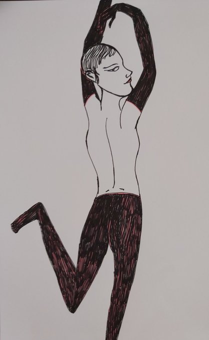 Same here. With slightly pink color. I really the contract with black and one bright color! #ArtistOnTwitter #art #inkpenart #VisualArt #透明水彩 #イラスト #イラストレーション #カラフル #絵