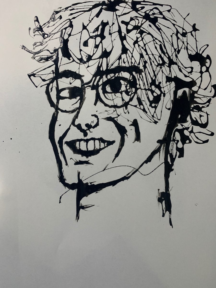 @madgescottstudio A tiny bit of work on the nose and hair and this unfinished piece will be finished!😊 #inkportrait #inkart #inkartworks #inktober #inktober2021 #fountainpendrawing #blackandwhiteart #blackandwhite