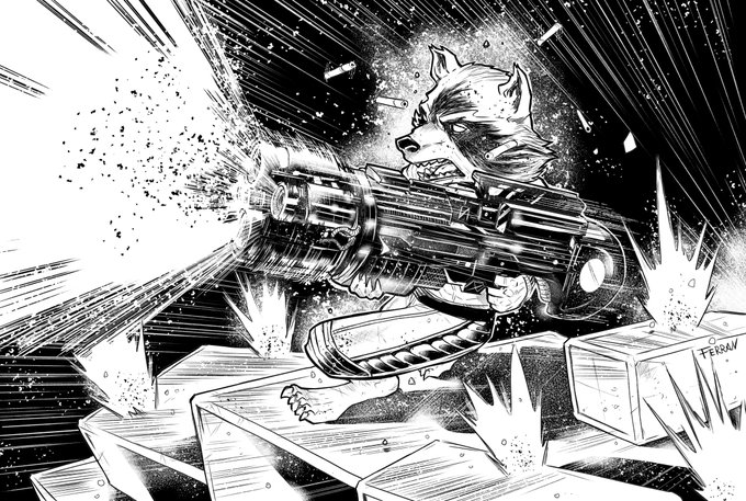 An Old Rocket Racoon Fan Art. Thanks, James Gunn for this fantastic journey! #rocket #racoon #rocketracoon #marvel #fanart #guardiansofthegalaxy #commisssionsopen #clipstudio #inks #digitalart
