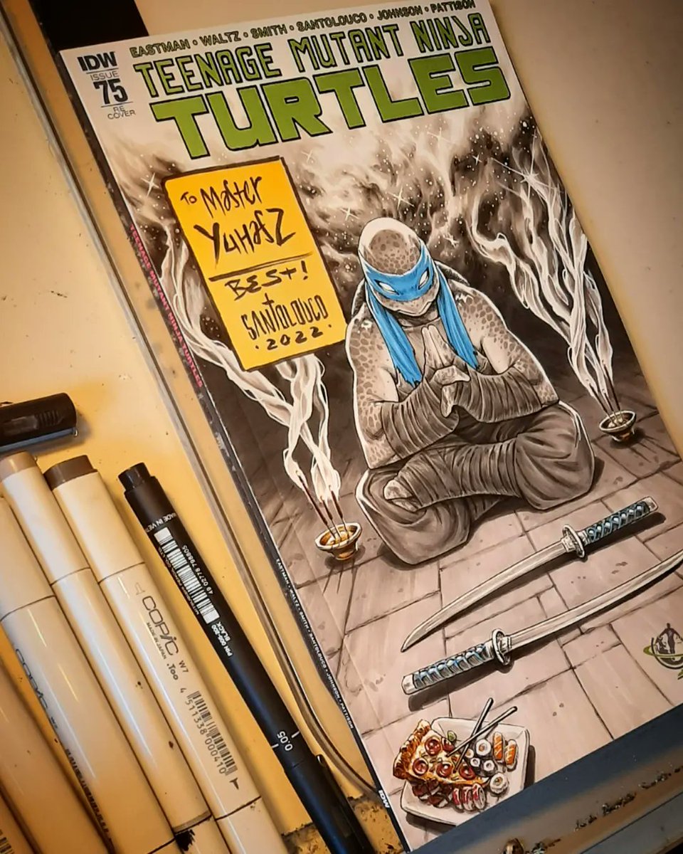 Blank cover Leonardo commission to @MichaelYuhasz on @idwpublishing #TMNT #75. #idwpublishing #teenagemutantninjaturtles #comicart #comics #santolouco #traditionalart #inks #copicmarkers