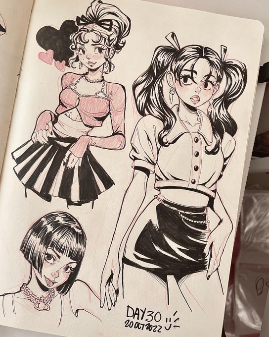 Drawings from my sketchbook. I wanted to try clothes I like and that I don’t usually draw. #traditionalart #inks #girls