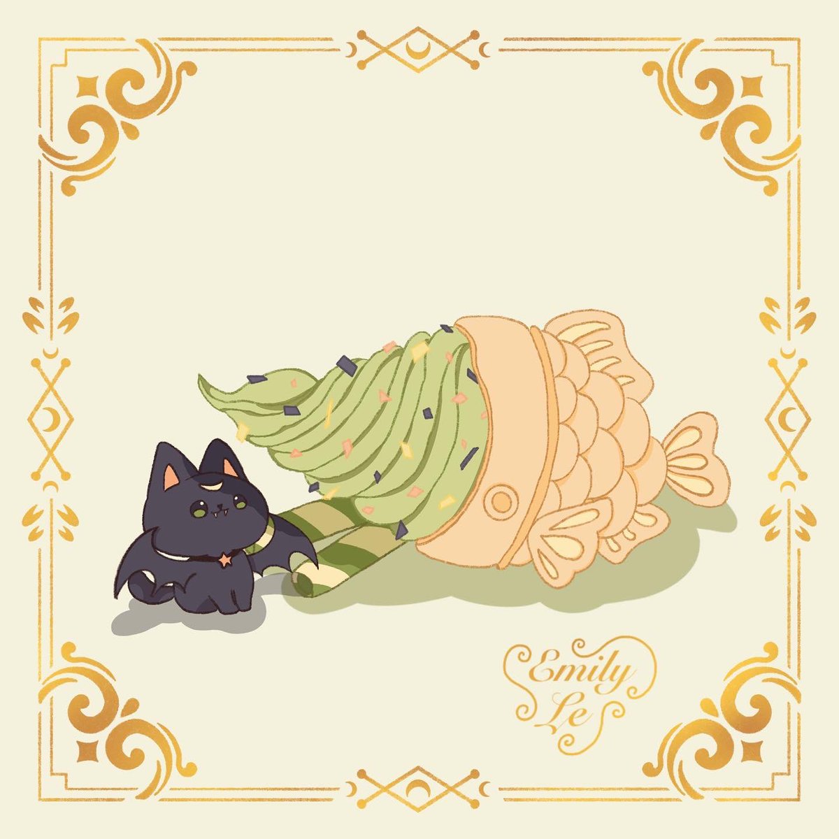 Inktober Day 5-6 🐈⬛🎃 #inktober2022 Prompts Used: 🎃 “confetti” from #inktivity2022 🎃 “black cat” from #meotashi2022inktober 🎃 “matcha” from #kcafetober22