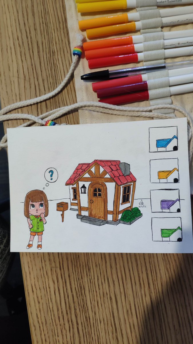 Day 13 : toiture. J'ai fais mon dessin un peu plus tard aujourd'hui mais ça vallait le coup d'attendre, non ?! XD #inktober #inktober13 #animalcrossingnewhorizons #animalcrossing #toit #toiture #roof #fun